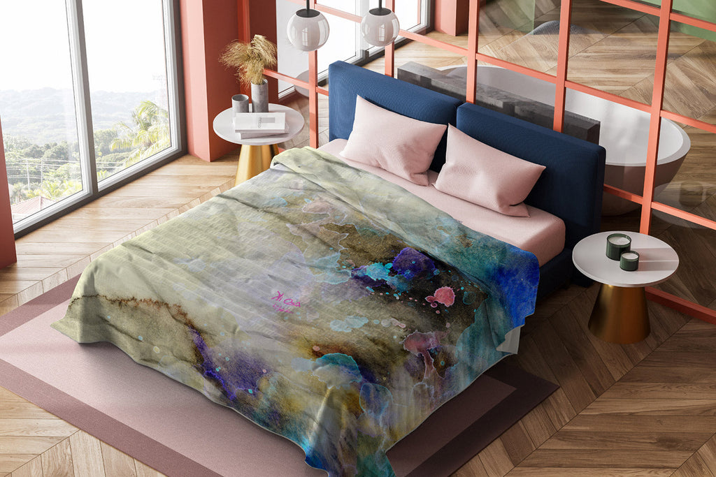 Sommerdecke mit vollflächigem Digitaldruck. Helle Farben und solide zu waschen.