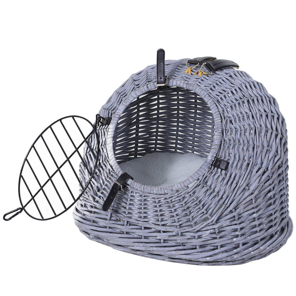 Müssen Sie mit Ihrer Katze in den Urlaub oder zum Tierarzt? Diese solide und moderne Korbtrage ist perfekt für Ihren Vierbeiner. Dank der Verwendung natürlicher und ungiftiger Materialien wie Korbweide ist es so konzipiert, dass es Ihrem Haustier eine einladende und komfortable Umgebung bietet. Ist nicht genug? Im Inneren der Transportbox befindet sich ein weiches, mit Fleece überzogenes Kissen, um während der langen Reisestunden ein bequemes Nickerchen zu machen.