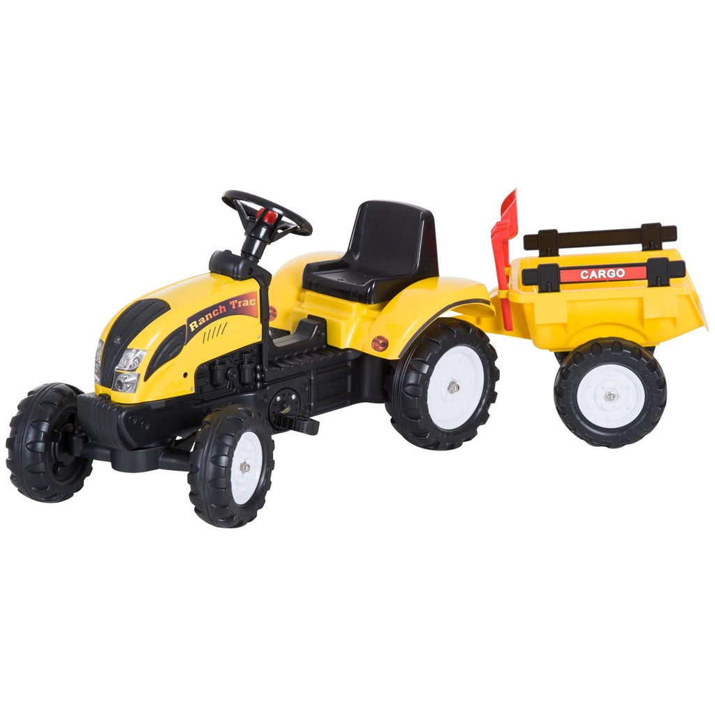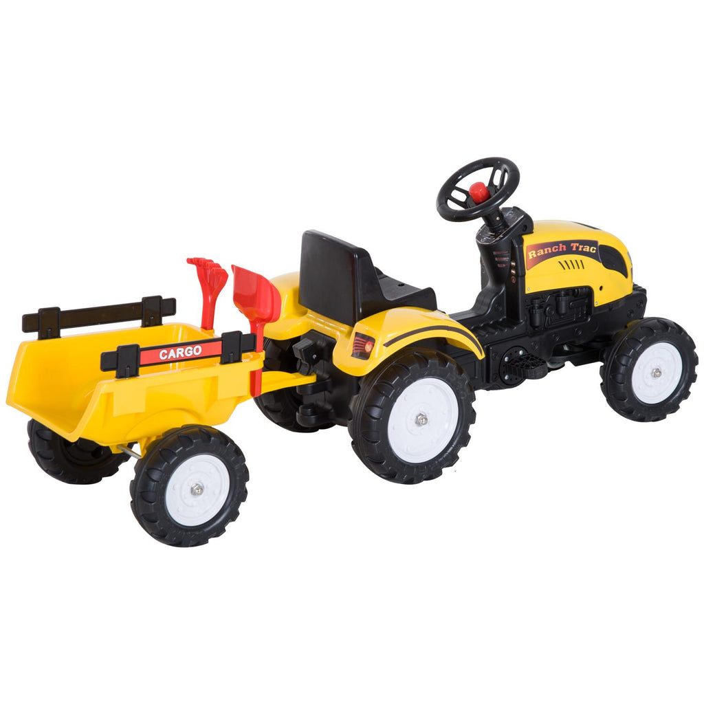 Trettraktor mit gelbem und schwarzem Anhänger 123 x 42 x 51 cm