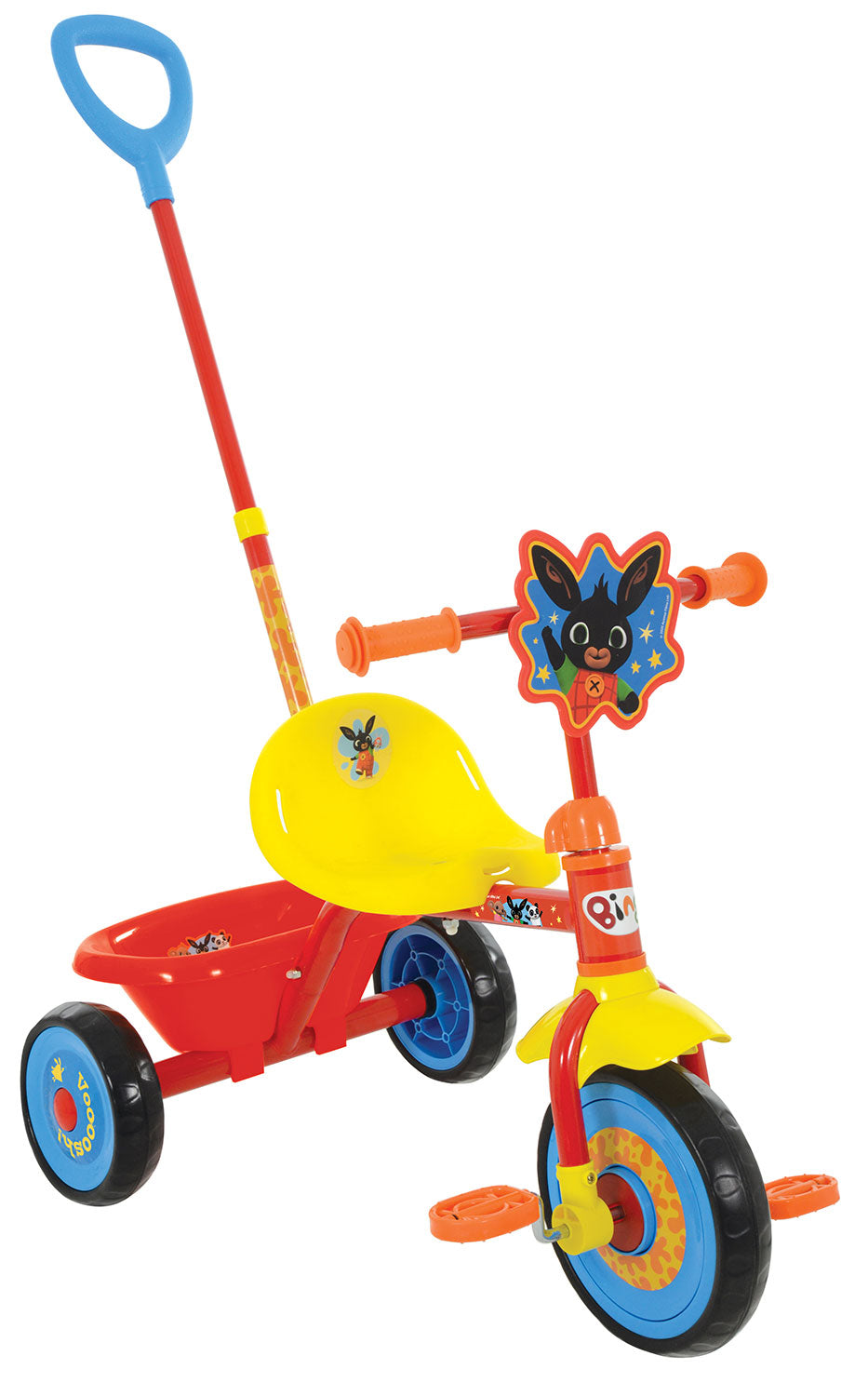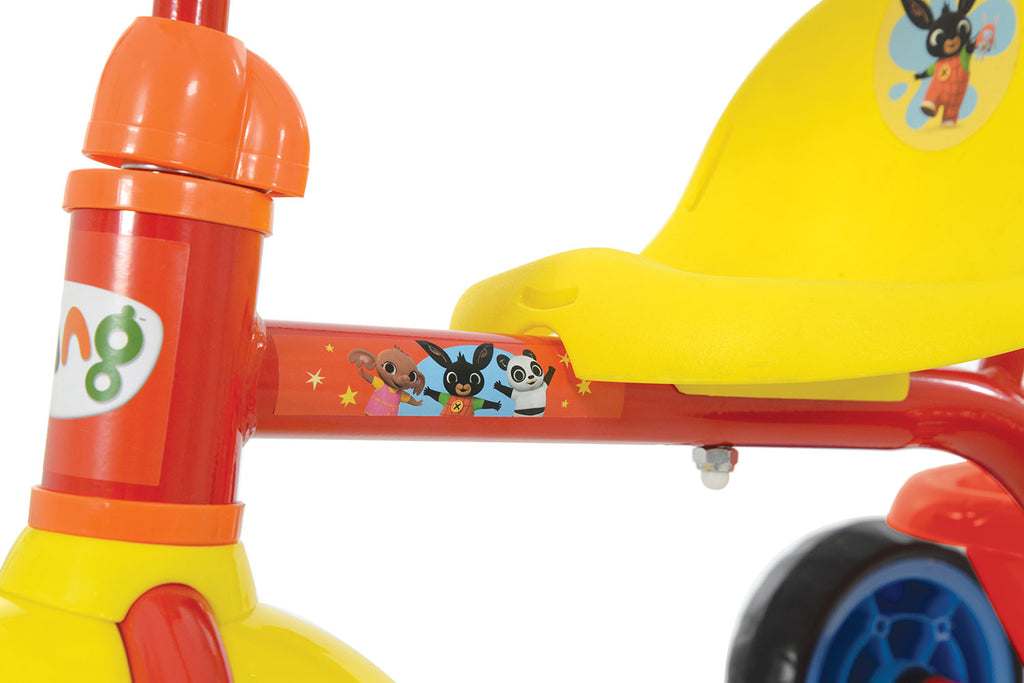 Triciclo a Pedali Primi Passi per Bambini con Maniglione Genitoriale Rimovibile e Vano Contenitore Bing Rosso