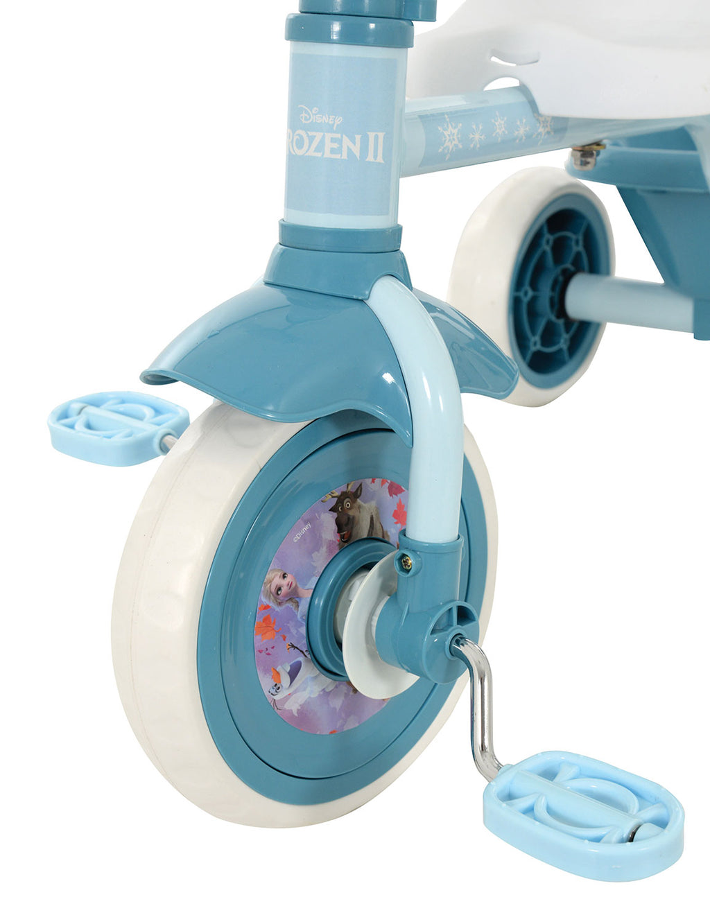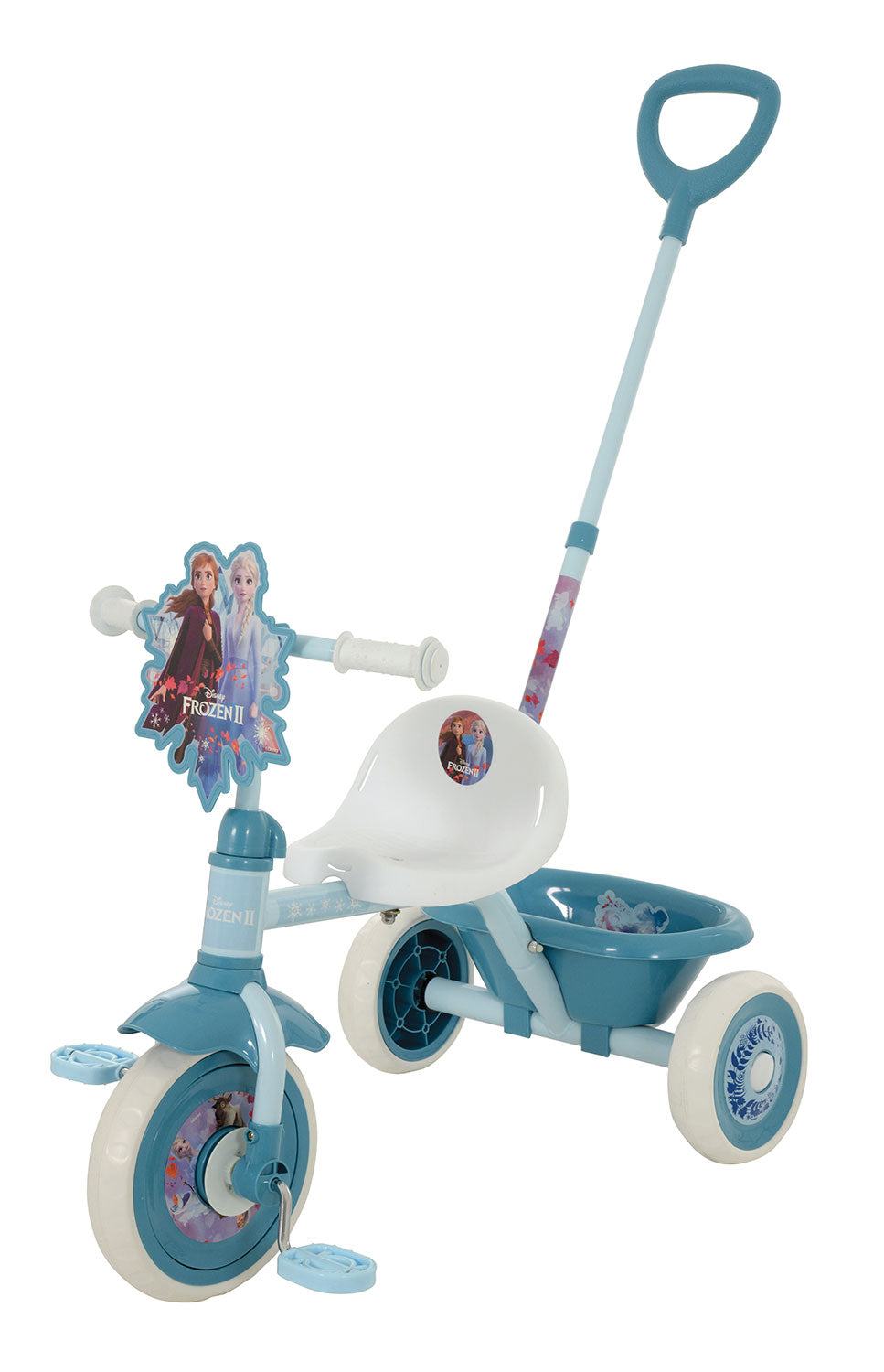 Triciclo a Pedali Primi Passi per Bambini con Maniglione Genitoriale Rimovibile e Vano Contenitore Disney Frozen Azzurro