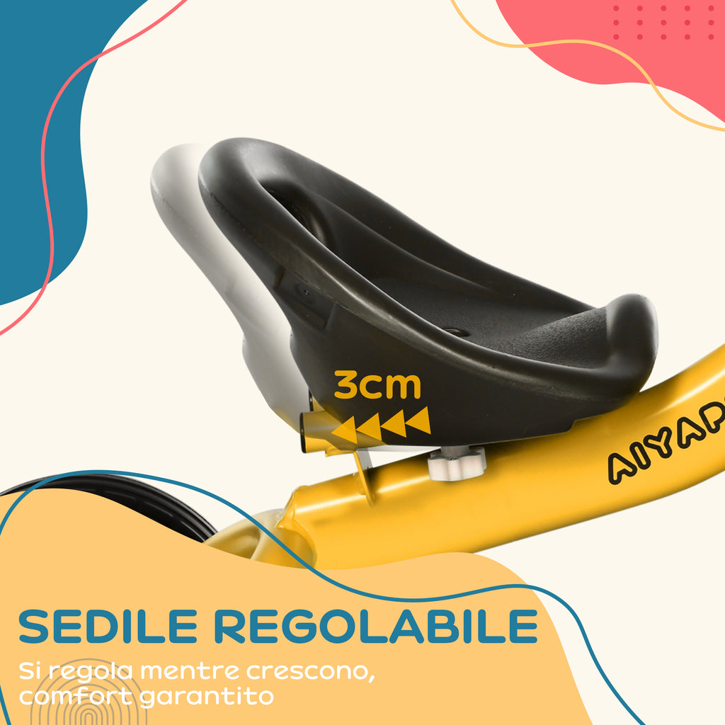 Triciclo per Bambini con Seduta Regolabile 70.5x50x58 cm Struttura in Metallo Giallo