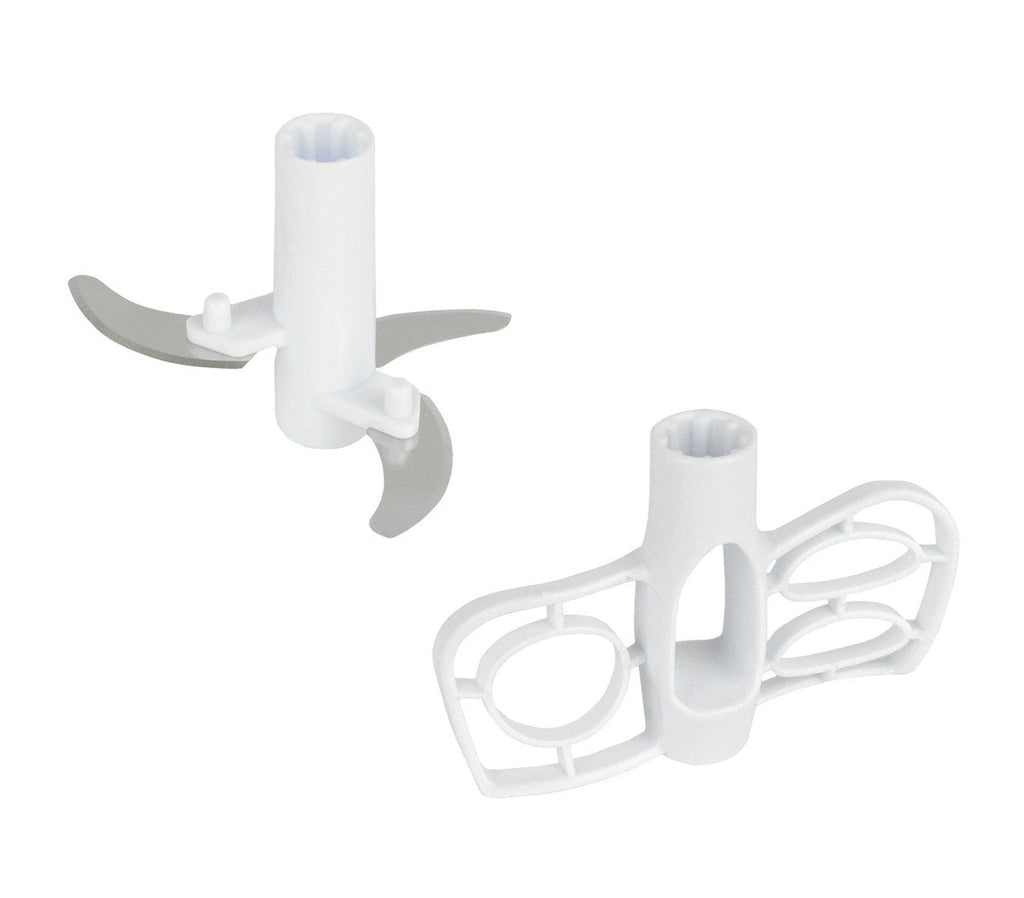 - Lieferumfang: 2 Hackmesser, 2 Zubehör zum Schlagen von Sahne oder Mixen