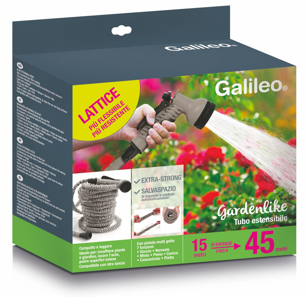 Dehnbarer Wasserpumpenschlauch 45 m mit Grey Soriani Gardenlike Gun