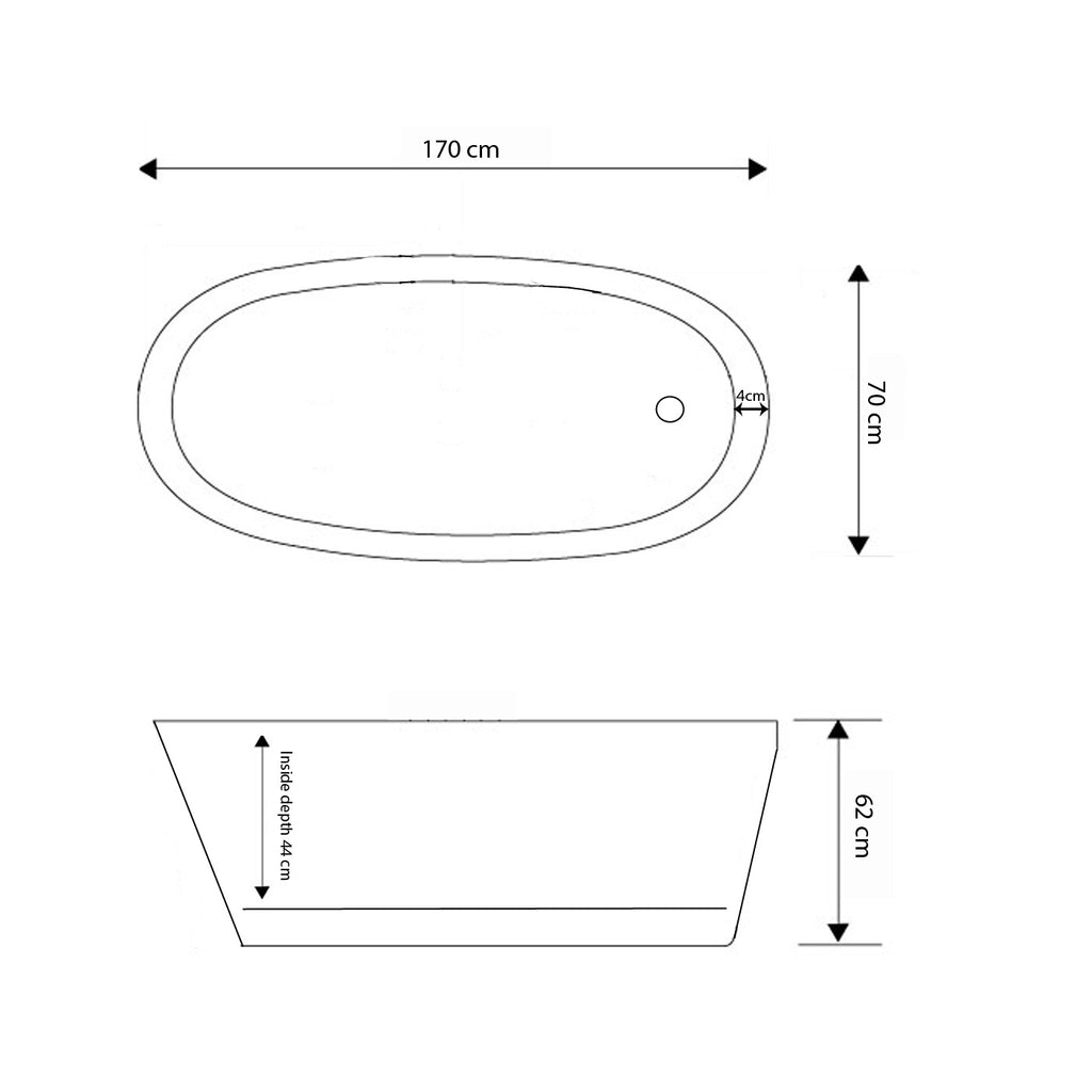 - Abmessungen der Wanne: Sockel 170 x 70 cm