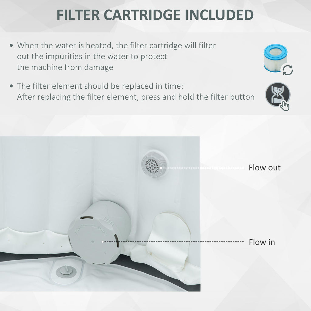 Mit diesem aufblasbaren Whirlpool ist es ganz einfach, das SPA zu Ihnen nach Hause zu bringen. Mit 108 Luftdüsen und der Heizfunktion schaffen Sie direkt in Ihrem Garten die perfekte Entspannungsecke für die ganze Familie. Tatsächlich lässt sich der oberirdische Pool einfach per Knopfdruck aufblasen, ist mit einer Abdeckplane ausgestattet und bietet Platz für bis zu 4-6 Personen. Warten Sie nicht, um sich einen Moment der Entspannung zu gönnen, wann immer Sie ihn brauchen!