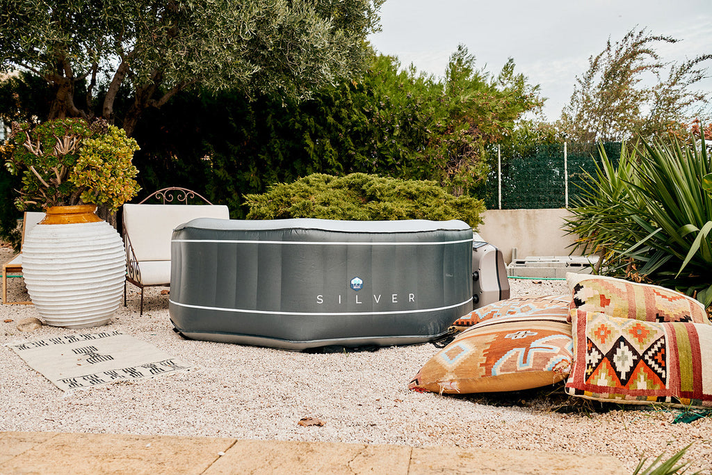 Aufblasbarer beheizter Außenwhirlpool 5/6 Sitzplätze 185 x 185 x 70 cm NetSpa Silber Schwarz