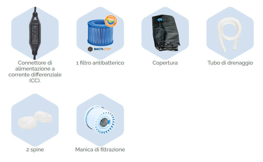 - Filtration: Filterblockgruppe + 1 antibakterielle Kartusche enthalten