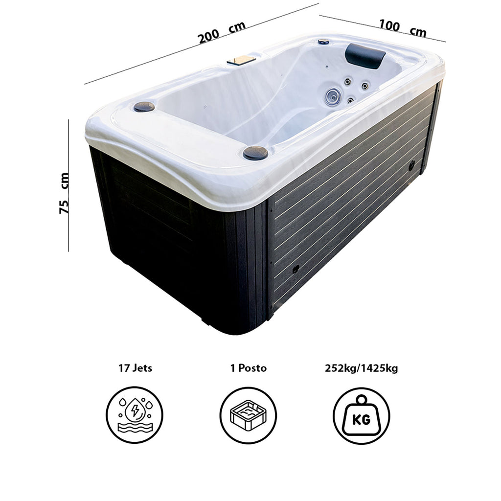• COMODA SEDUTA: Caesar conta 1 posto confortevole, per stare seduto in assoluto relax e godere di serate rilassanti, lettura o meditazione, grazie alle funzioni audio, luci e design. Le misure sono accuratamente studiate: 200 cm x 100 cm x 75 cm, pensate per dare spazio ai movimenti interni restando compatta per un idromassaggio monoblocco.