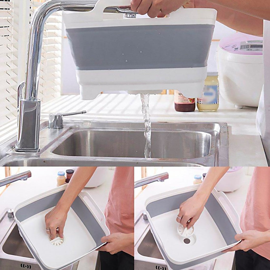 Faltbarer Mehrzweck-Waschtisch 30,5 x 30 cm 9 Liter mit grauem Silikon-Ablassstopfen