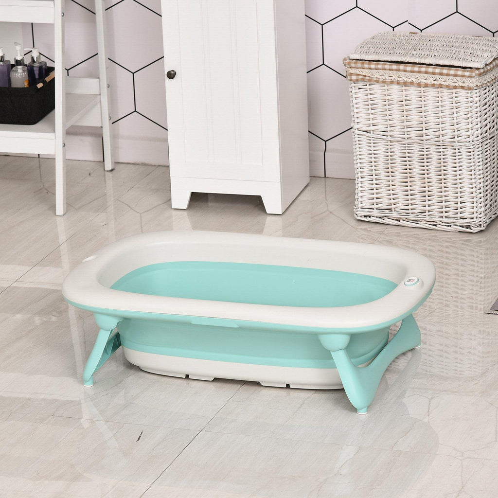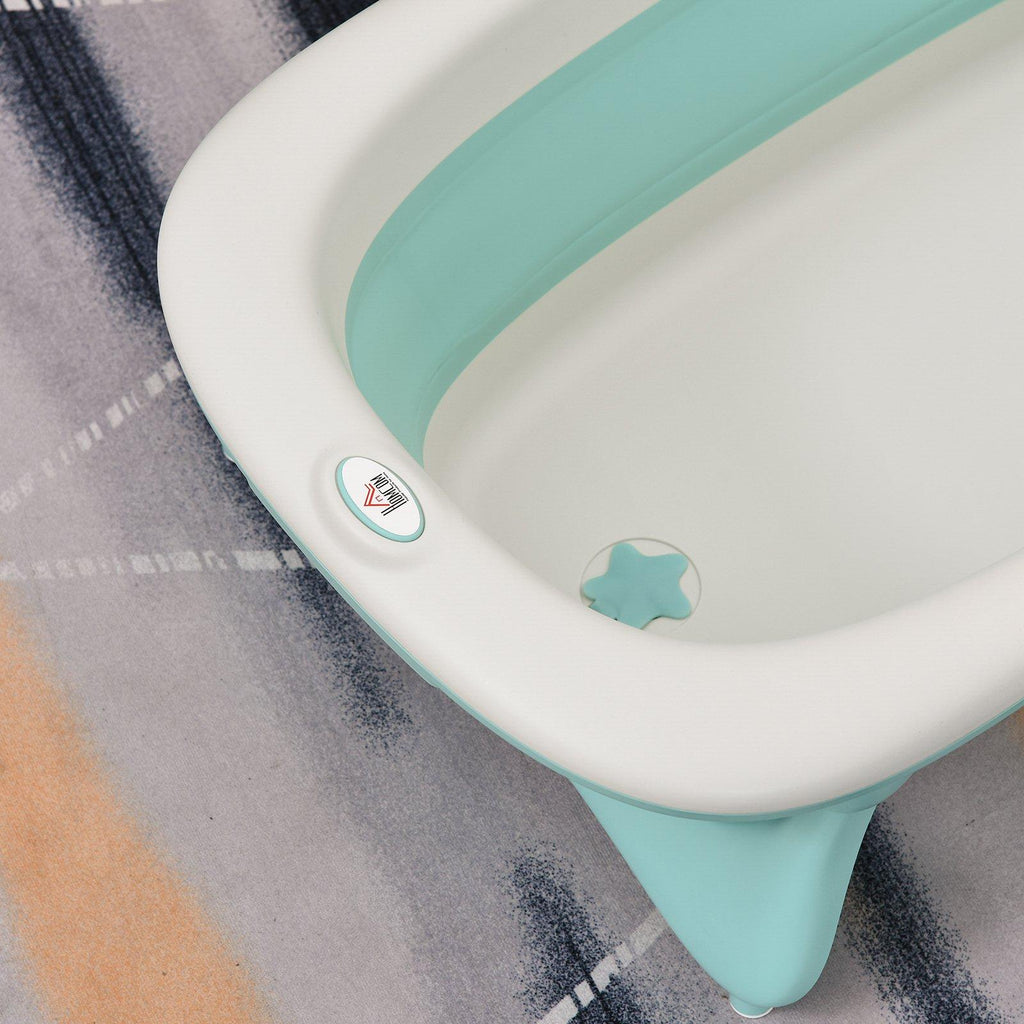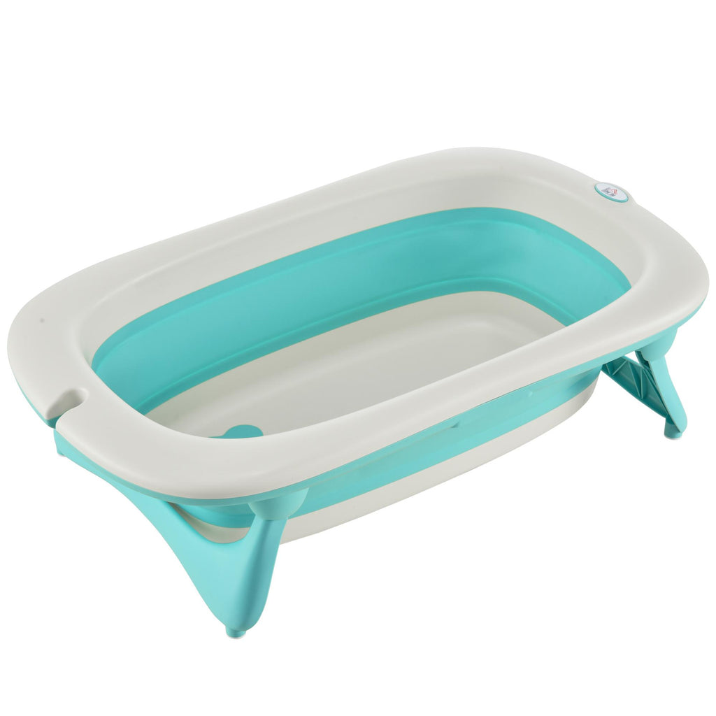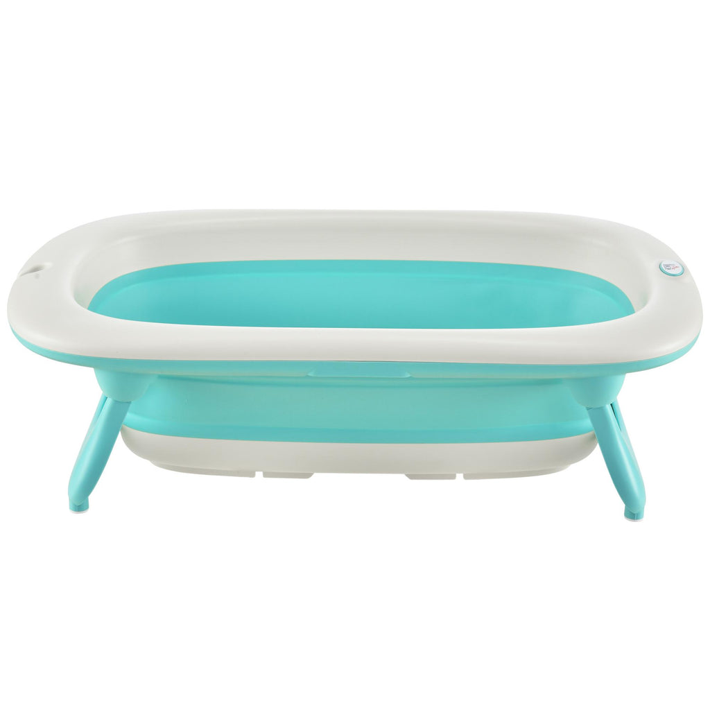 Zusammenklappbare rutschfeste Babybadewanne mit grünem Ablauf