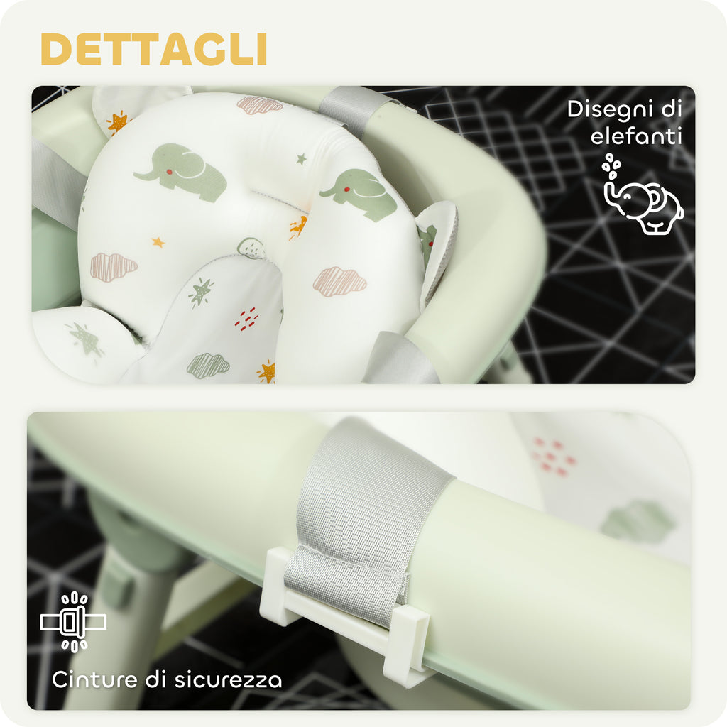 Vaschetta Bagnetto per Neonati Pieghevole 86x53x25,5 cm con Cuscino e Bacinella Lavabo Verde