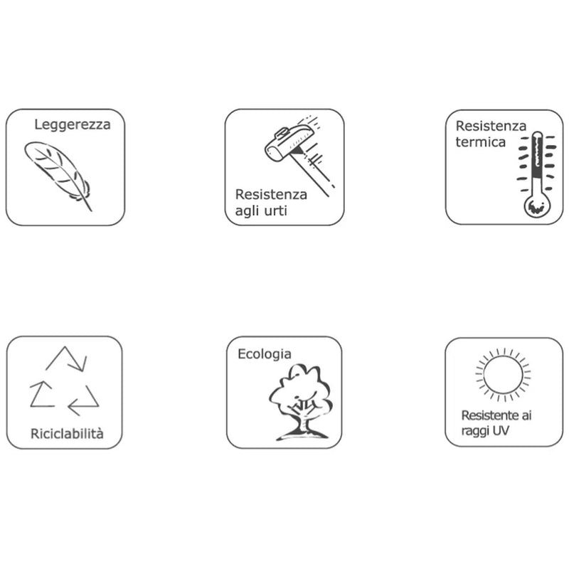 Es widersteht perfekt Witterungseinflüssen , UV-Sonnenstrahlen, niedrigen und hohen Temperaturen und behält seine Schönheit und Integrität im Laufe der Zeit.