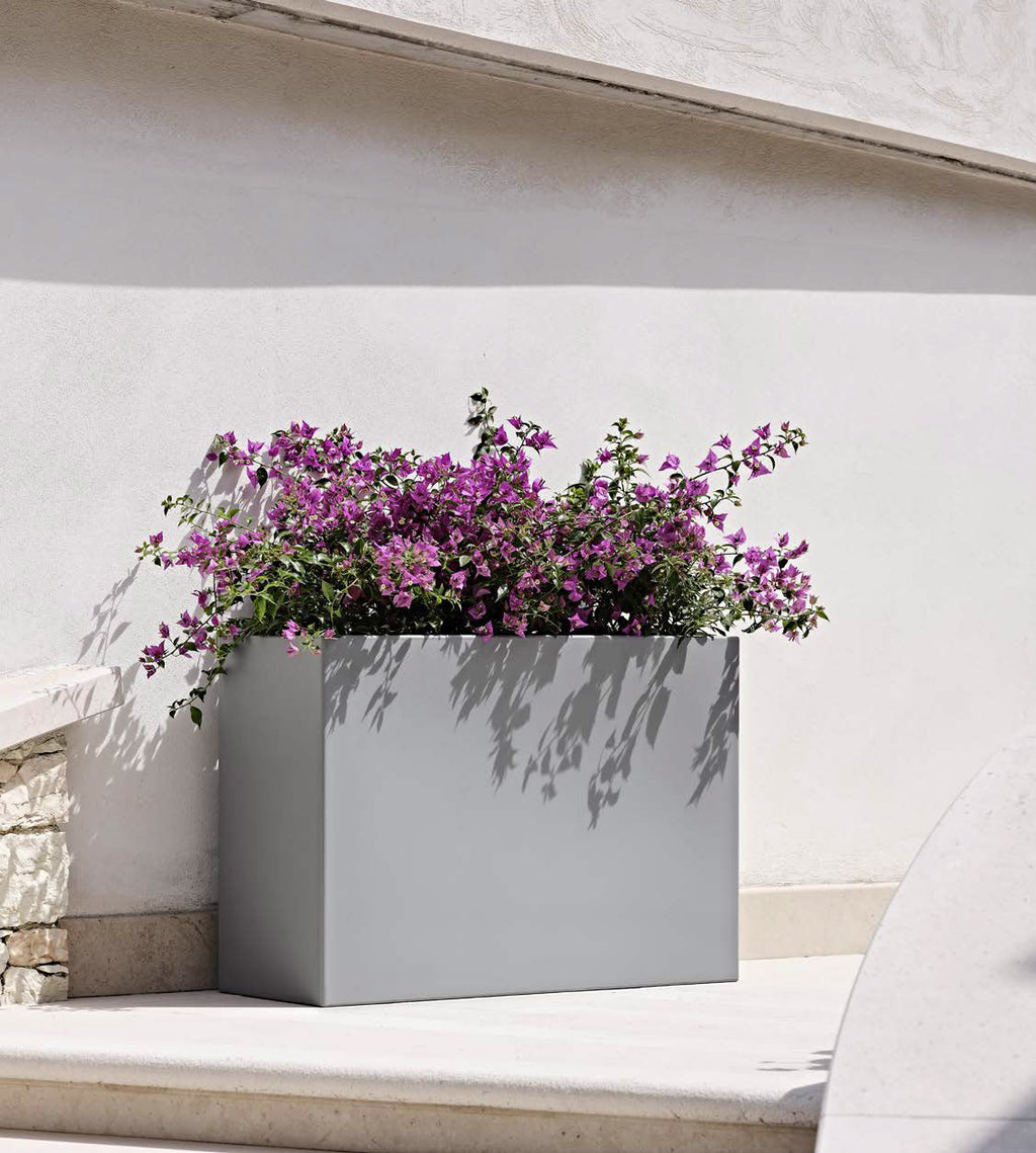 Der Pflanztopf Schio Tower besteht aus verstärktem Kunststoffharz und wird in Rotationstechnologie (Rotomoulding) hergestellt, die eine hohe Widerstandsfähigkeit und Festigkeit garantiert und die Herstellung leichter Produkte auch in den größten Formaten ermöglicht. Die matte Oberfläche verleiht der Schio-Vase ein elegantes Aussehen, das natürlichen Materialien ähnelt. Es lässt sich leicht ohne Reinigungsmittel waschen, ist stoßfest und zu 100 % ungiftig und recycelbar. Schio hat ein vorgefertigtes Loch, das das Bohren erleichtert, um den Wasserablauf zu ermöglichen. Diese Vase kann als Indoor-Vase verwendet werden, kann aber problemlos als Terrassen- oder Gartenvase verwendet werden, da sie UV-beständig und somit farblich unveränderlich ist. Hitze und Kälte hält die Vase problemlos von Temperaturen von -30°C bis +60°C aus. Die modularen Vasen der Schio-Familie eignen sich sehr gut für die Organisation von Räumen. Hergestellt in Italien .