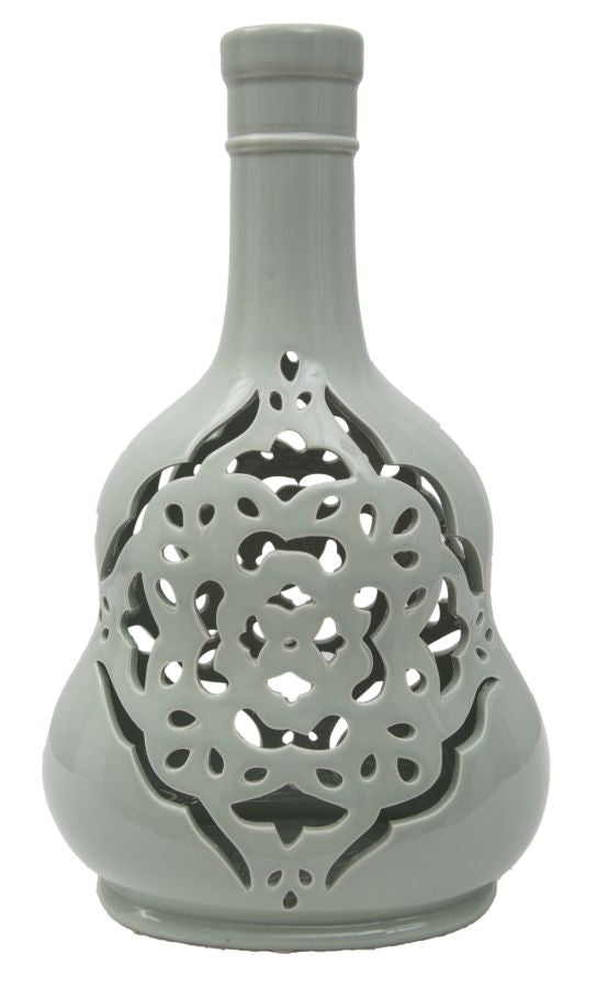 Vase aus grauem Porzellan mit floralen Intarsien. Blumenhalter mit eleganten und modernen Linien