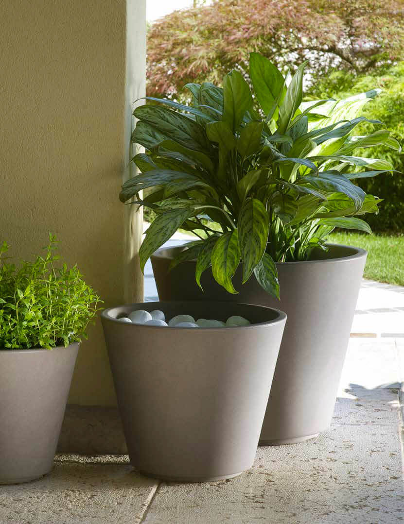 Die Ribeira Essential Vase ist eine Vase mit modernem und elegantem Stil, hergestellt aus verstärktem Kunststoffharz und wird in Rotationstechnologie (Rotomoulding) hergestellt, die eine hohe Widerstandsfähigkeit und Festigkeit garantiert, wodurch leichte Produkte auch in den größten Dimensionen hergestellt werden können. Die matte Oberfläche verleiht der Vase ein ultrarealistisches Aussehen, das Terrakotta und natürlichen Materialien sehr ähnlich ist. Es lässt sich leicht ohne Reinigungsmittel waschen, ist stoßfest und zu 100 % ungiftig und recycelbar. Diese Vase kann problemlos als Terrassen- oder Gartenvase verwendet werden, da sie UV-beständig und somit farblich unveränderlich ist. Hitze und Kälte hält die Vase problemlos von Temperaturen von -30°C bis +60°C aus.