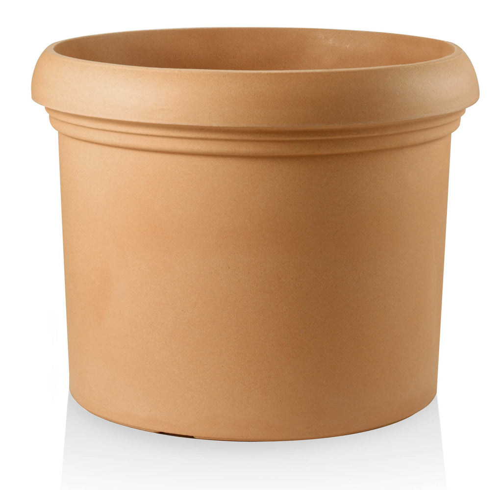 Die Vicenza Calssic Cilindro Vase ist eine Vase mit klassischem und elegantem Stil aus verstärktem Kunstharz und wird in Rotationstechnologie (Rotomoulding) hergestellt, die eine hohe Widerstandsfähigkeit und Festigkeit garantiert und die Herstellung von leichten Produkten auch in den größten Dimensionen ermöglicht. Die matte und leicht gestreifte Oberfläche verleiht der Vase ein ultraechtes Aussehen, das Terrakotta und natürlichen Materialien sehr ähnlich ist. Es lässt sich leicht ohne Reinigungsmittel waschen, ist stoßfest und zu 100 % ungiftig und recycelbar. Der Vicenza Calssic Cilindro Topf hat einen Erleichterungspunkt (vorbereitetes Loch) für alle Bohrungen, um den Wasserablauf zu ermöglichen. Diese Vase kann problemlos als Terrassen- oder Gartenvase verwendet werden, da sie UV-beständig und somit farblich unveränderlich ist. Hitze und Kälte hält die Vase problemlos von Temperaturen von -30°C bis +60°C aus.