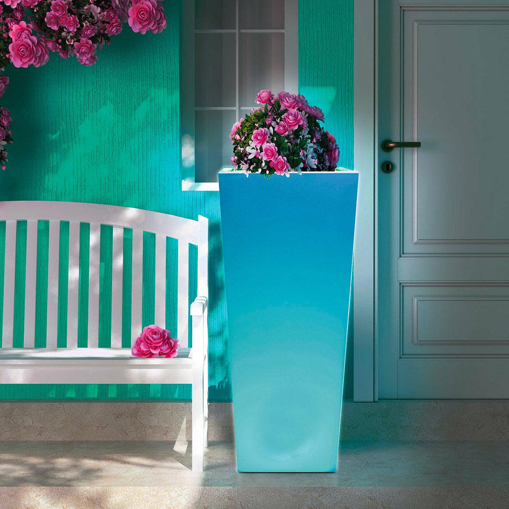 Vaso Quadrato Luminoso da Giardino Solare Autoricaricabile 38x38x86 cm in Polietilene Sined Solar 86 Bianco