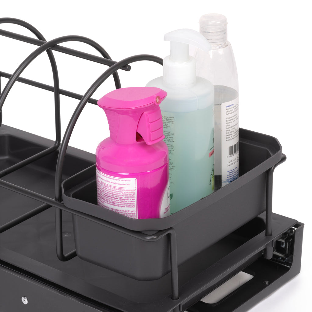 Il vassoio per accessori da cucina è progettato per riporre i prodotti per la pulizia nell'armadietto sotto il lavello. La sua struttura è dotata di guide su cuscinetti a sfera ad estrazione totale per un facile accesso ai detergenti, manualmente o automaticamente se viene fissata alla porta.