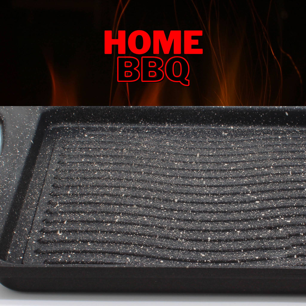 Griglia, in alluminio pressofuso con rivestimento antiaderente. Grigliate perfette grazie all'alto spessore delle griglie e all'ottimo antiaderente. Comoda per servire in tavola dove mantiene la pietanza calda. Utilizzabile anche nel Bbq come piastra.
