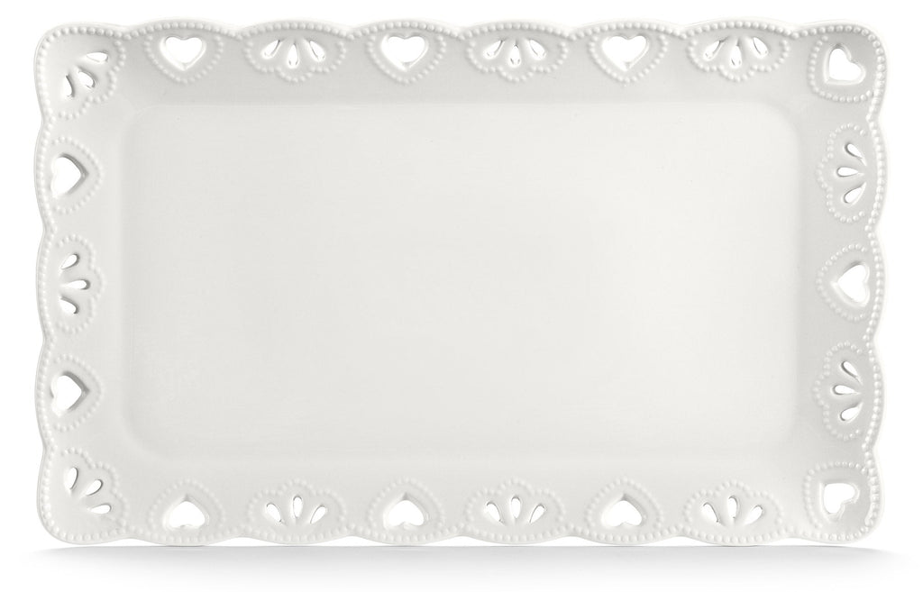Perforiertes rechteckiges Tablett 35x22 cm in Porzellan Kaleidos Juliet White