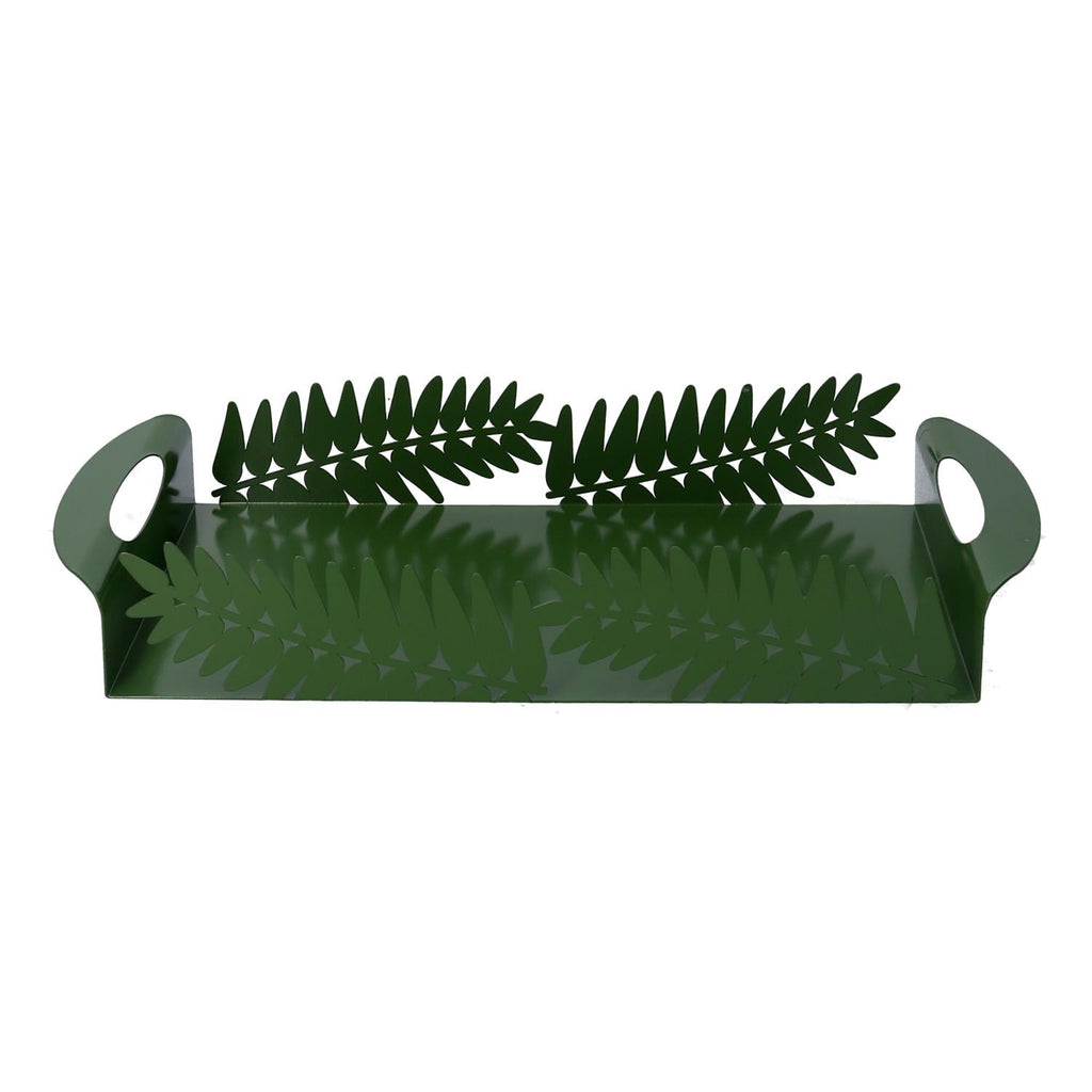 Vassoio Rettangolare 41x20xh6,5 cm in Metallo Design Foglia Alloro Verde Scuro