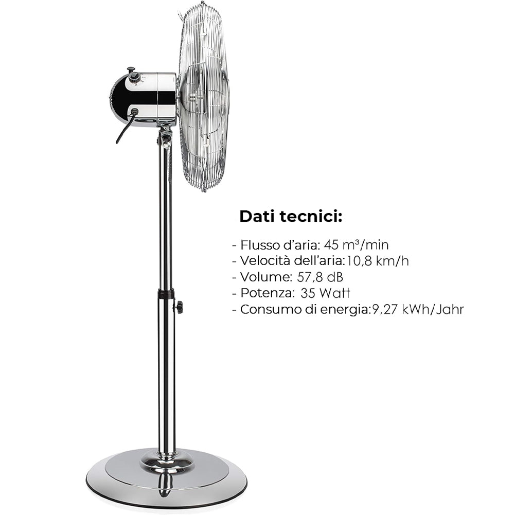 Ventilatore a Piantana Silenzioso in Acciaio 50 W 3 Velocità e Funzione Girevole