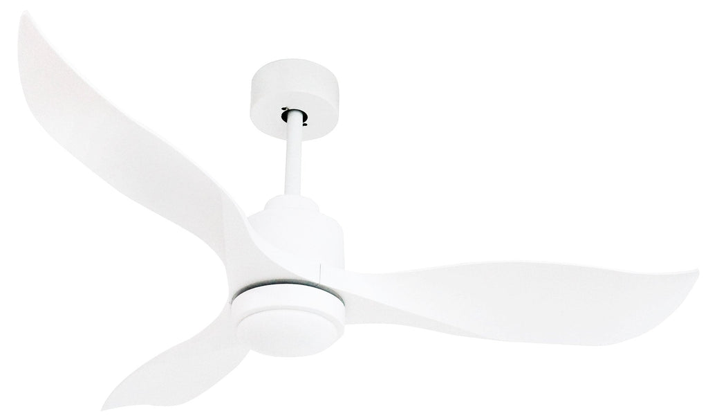 Rondine ist ein dekorativer Deckenventilator mit 3 weißen ABS-Flügeln und weißem Gehäuse.