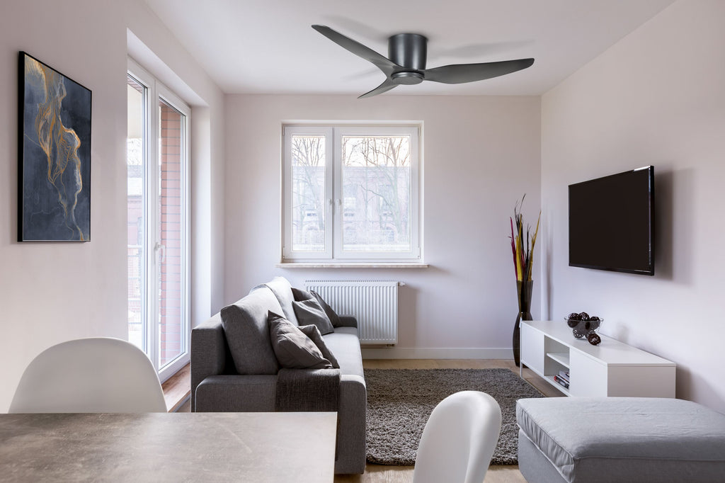 - Schwarzer Lüfter 3 Flügel Flush LED 15W Lüfter besonders geeignet für Umgebungen mit niedrigen Decken dank der Aufhängung von nur 253 mm, kann auch in überdachten Außenbereichen eingesetzt werden