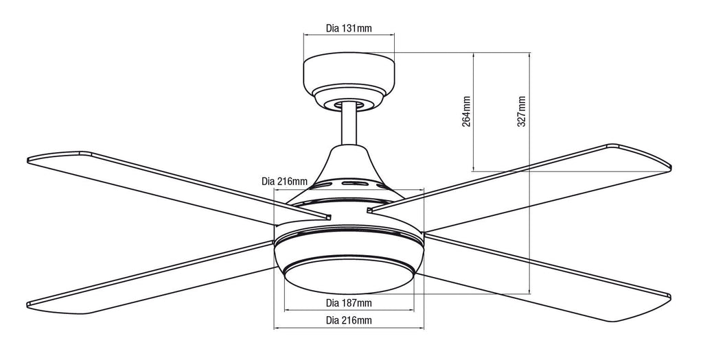 - Link Fan Weiße LED und Fernbedienung Weißer Deckenventilator mit Stahlstruktur und 4 Flügeln aus massivem Sperrholz, Durchmesser 122 cm
