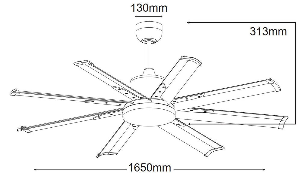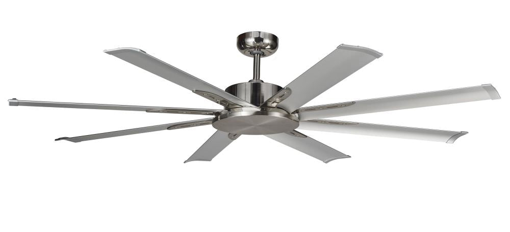 - Aluminium-Deckenventilator mit 8 Flügeln in Silber Silber Durchmesser 165 cm perfekt für Räume von 25 bis 35 Quadratmetern