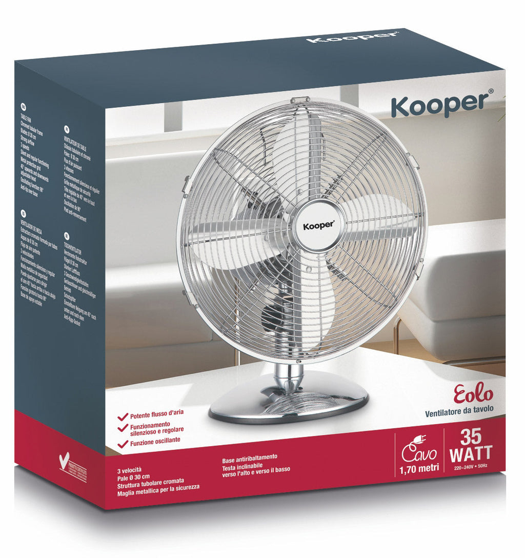Tischventilator 30 cm oszillierend 3 Geschwindigkeiten 35 W Kooper Eolo Chrom