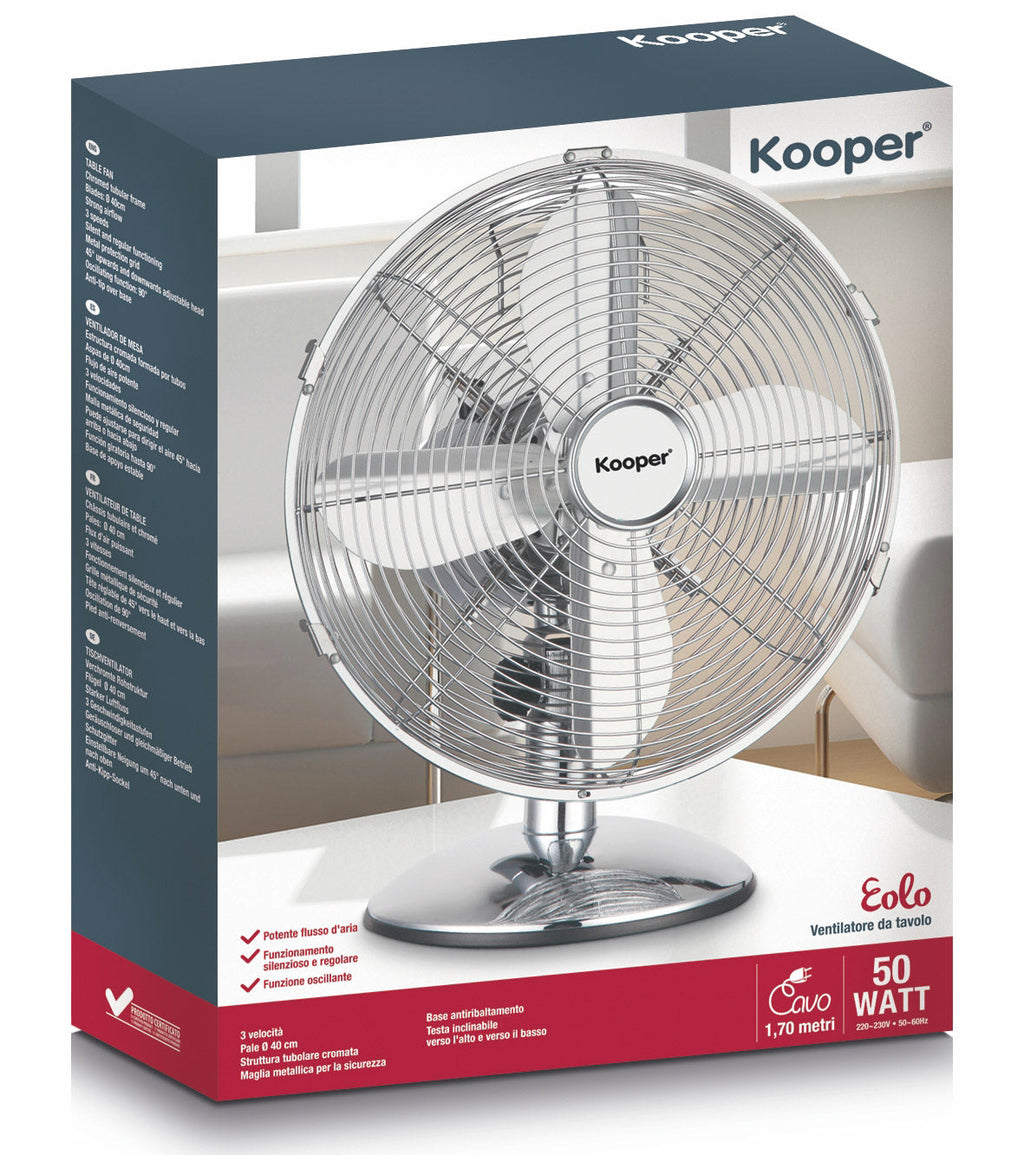 Tischventilator 40 cm oszillierend 3 Geschwindigkeiten 50 W Kooper Eolo