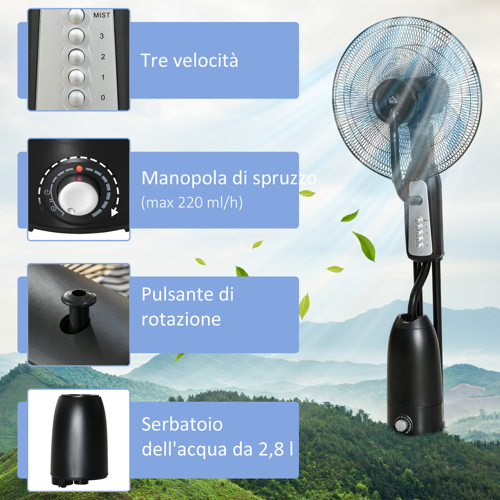 Ventilatore Nebulizzatore 90W a 4 Ruote con Serbatoio 2.8L e 4 Velocità 44,5x38,5x120 cm in Metallo PE e ABS Nero