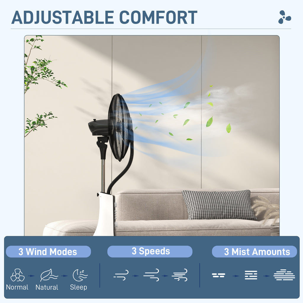 Ventilatore Nebulizzatore con Serbatoio 3L 44,5x38,5x120 cm 3 Modalità e 3 Velocità Bianco e Nero