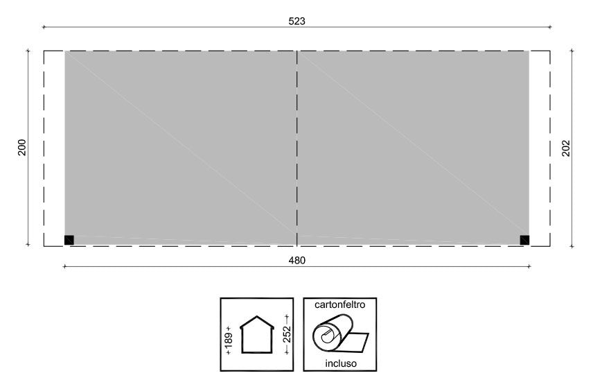 Frontverdanda für Gartenhaus 480x200 cm in Holz
