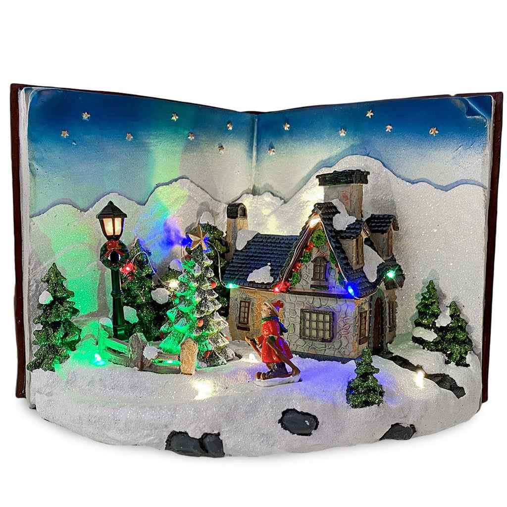 Weihnachtsdorf 33x19x22 cm Blaues Buch mit Lichtern, Geräuschen und Bewegung
