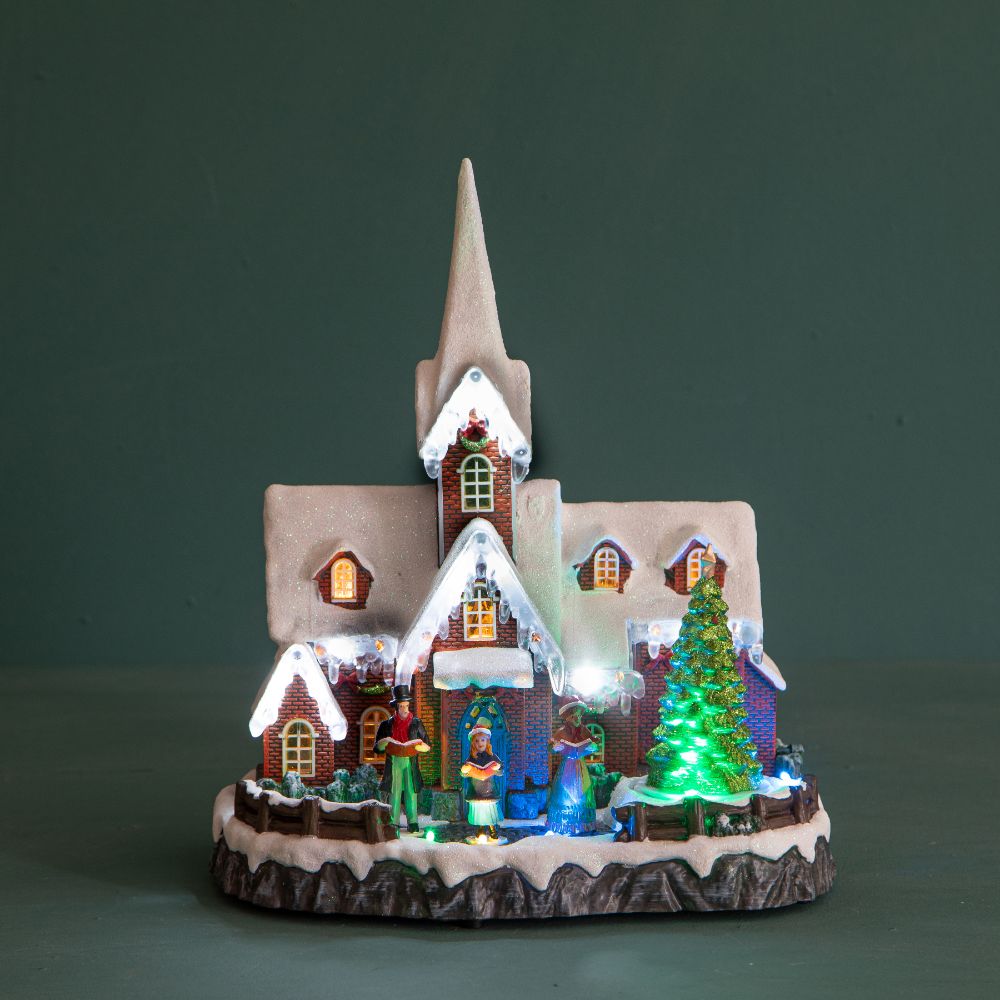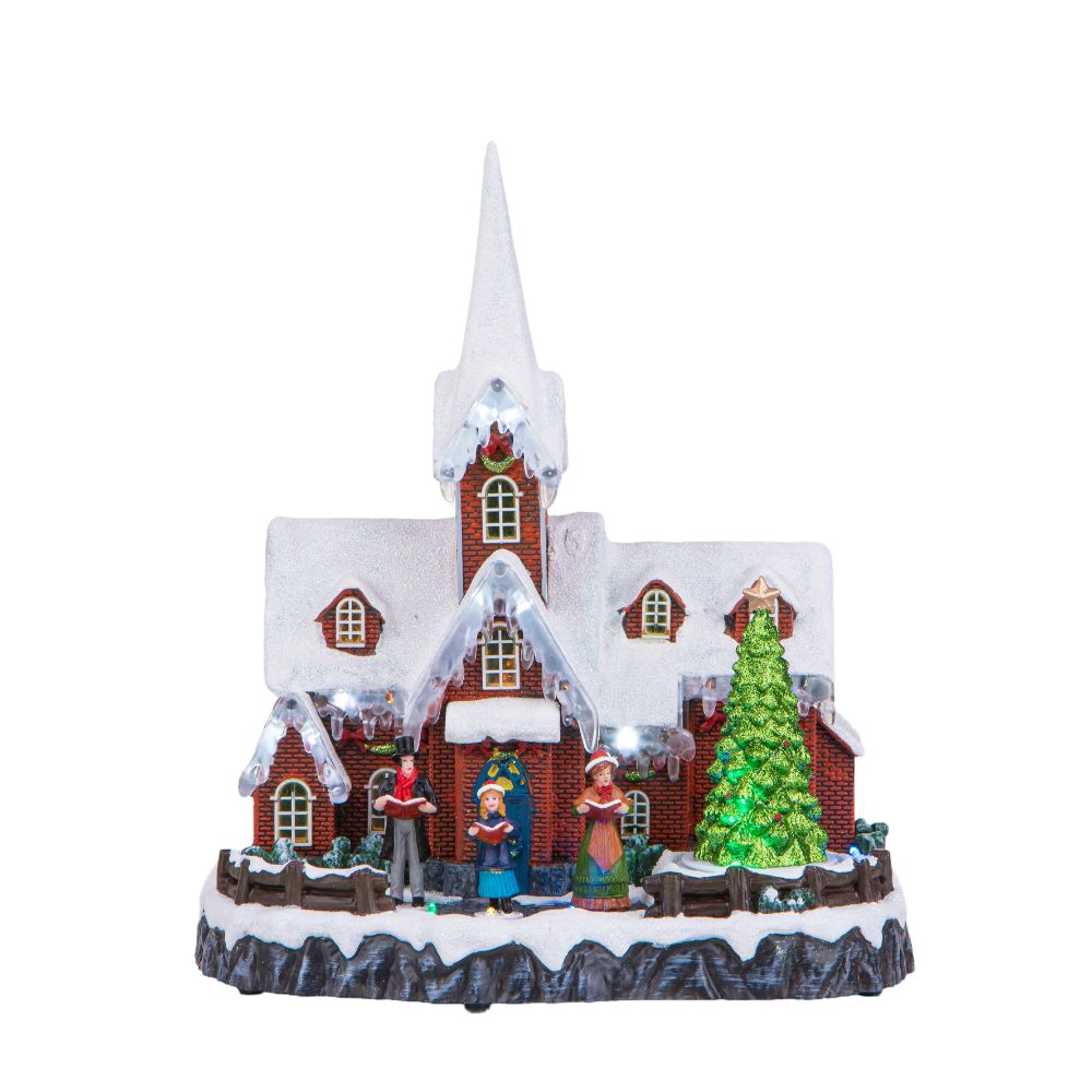 Villaggio Natalizio Chiesetta Luci Musica e Movimento 31,5 cm in Resina