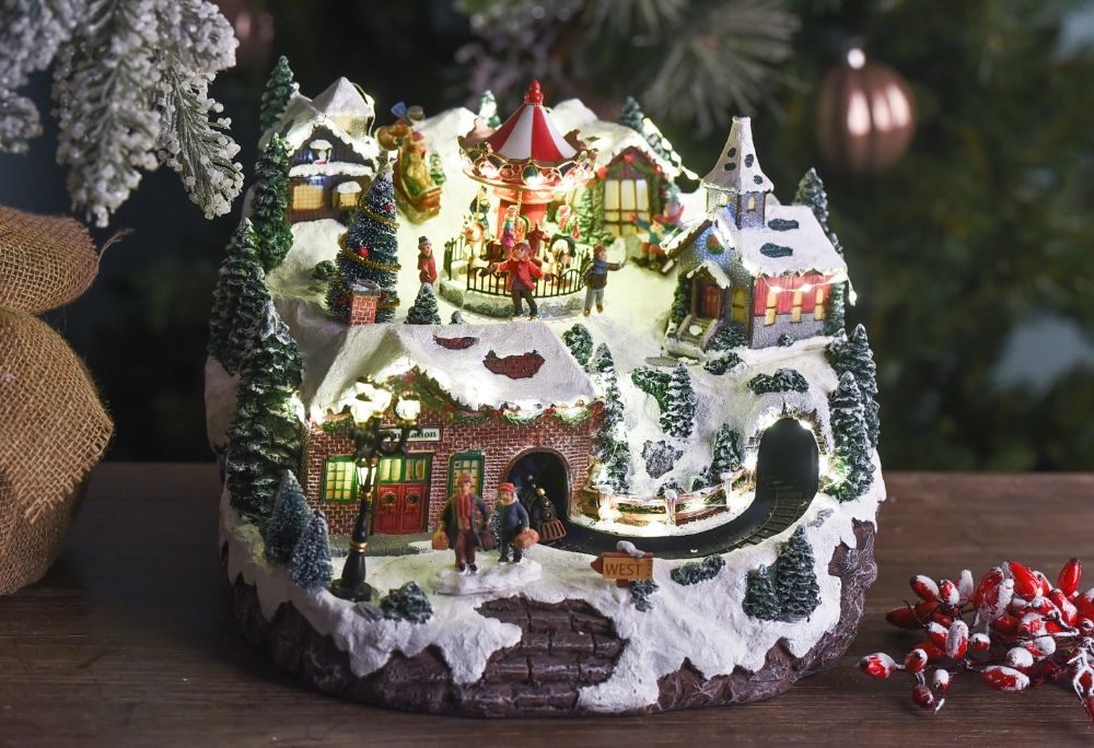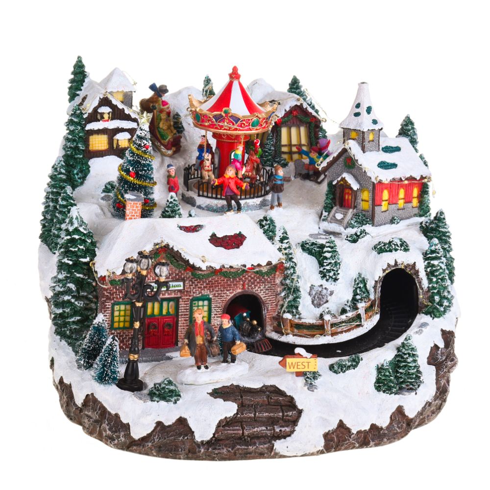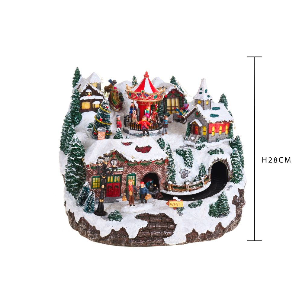 Villaggio Natalizio Giostra e Stazione Luci Musica e Movimento 34 cm in Resina
