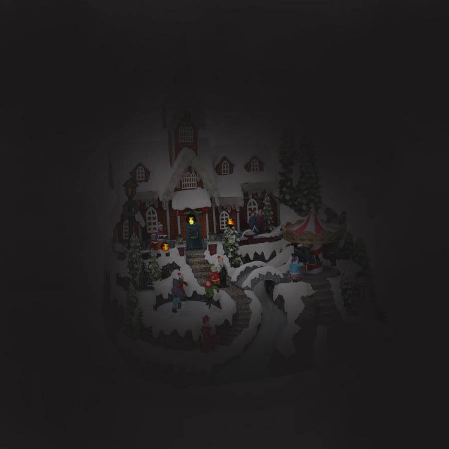 Weihnachtsdorf in Harz Kirche und Eisbahn mit Lichtern und Geräuschen 33x31xh38 cm Adami