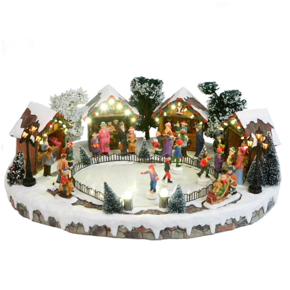 Villaggio Natalizio Laghetto Ghiacciano Luci Musica e Movimento 44,5 cm in Resina