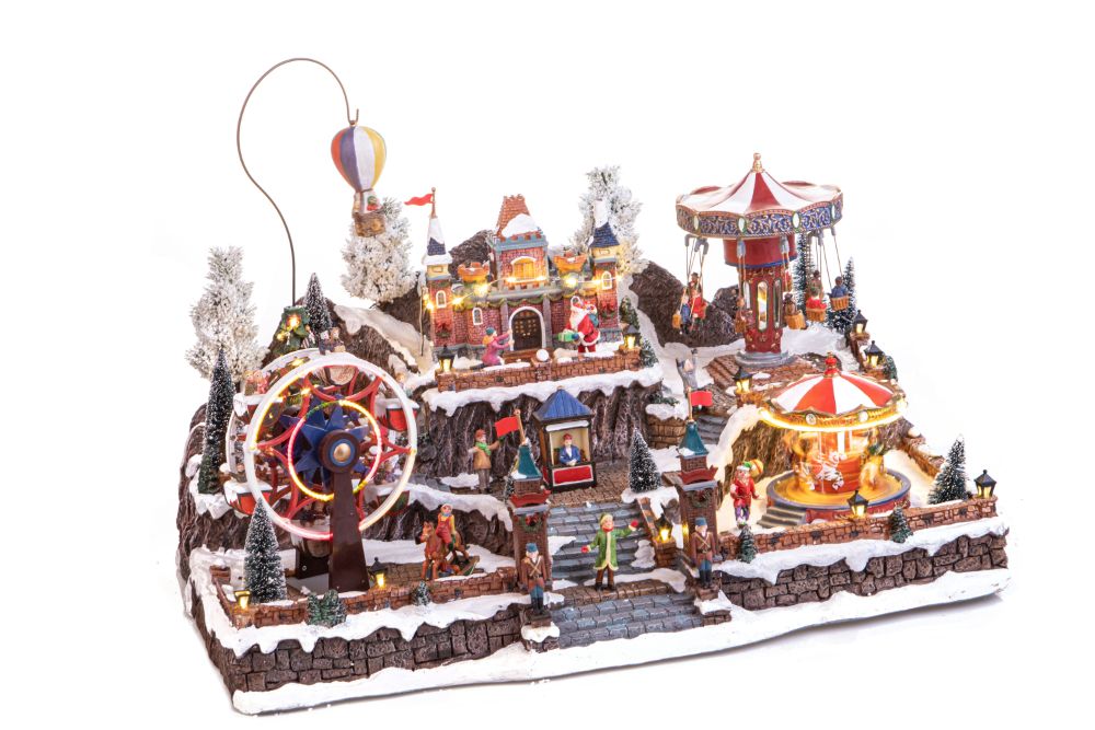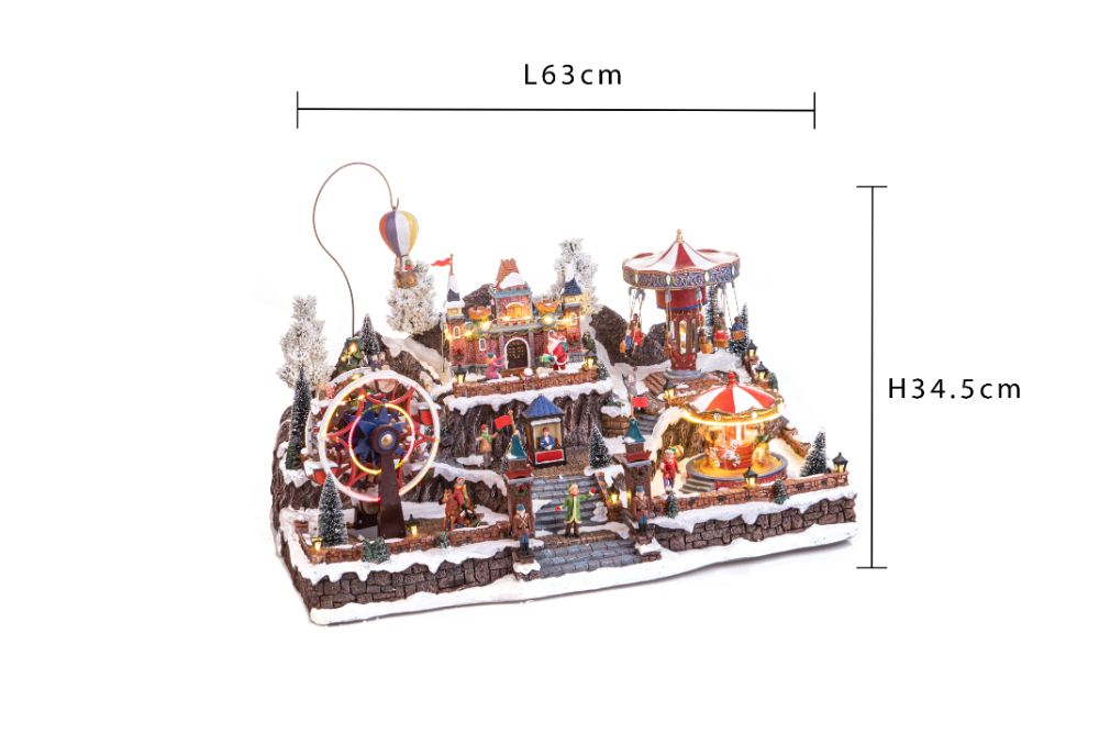 Villaggio Natalizio Luna Park Luci Musica e Movimento 63 cm in Resina