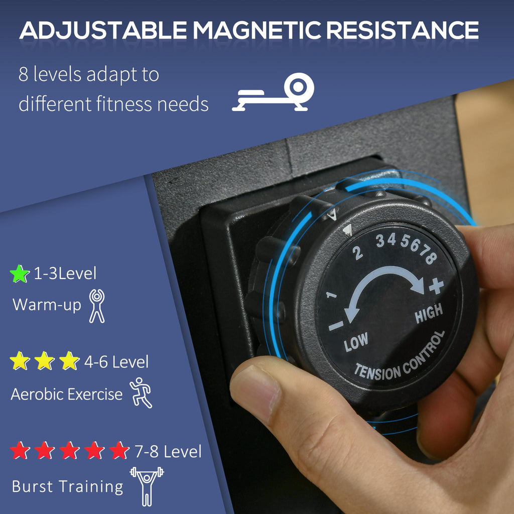 - MAGNETISCHER WIDERSTAND: Das magnetische Rudergerät bietet ein reibungsloses und leises Indoor-Trainingserlebnis. 8 magnetische Widerstandsstufen können mit einer einfachen Drehung erhöht oder verringert werden, um der Trainingsintensität für Anfänger oder Experten gerecht zu werden