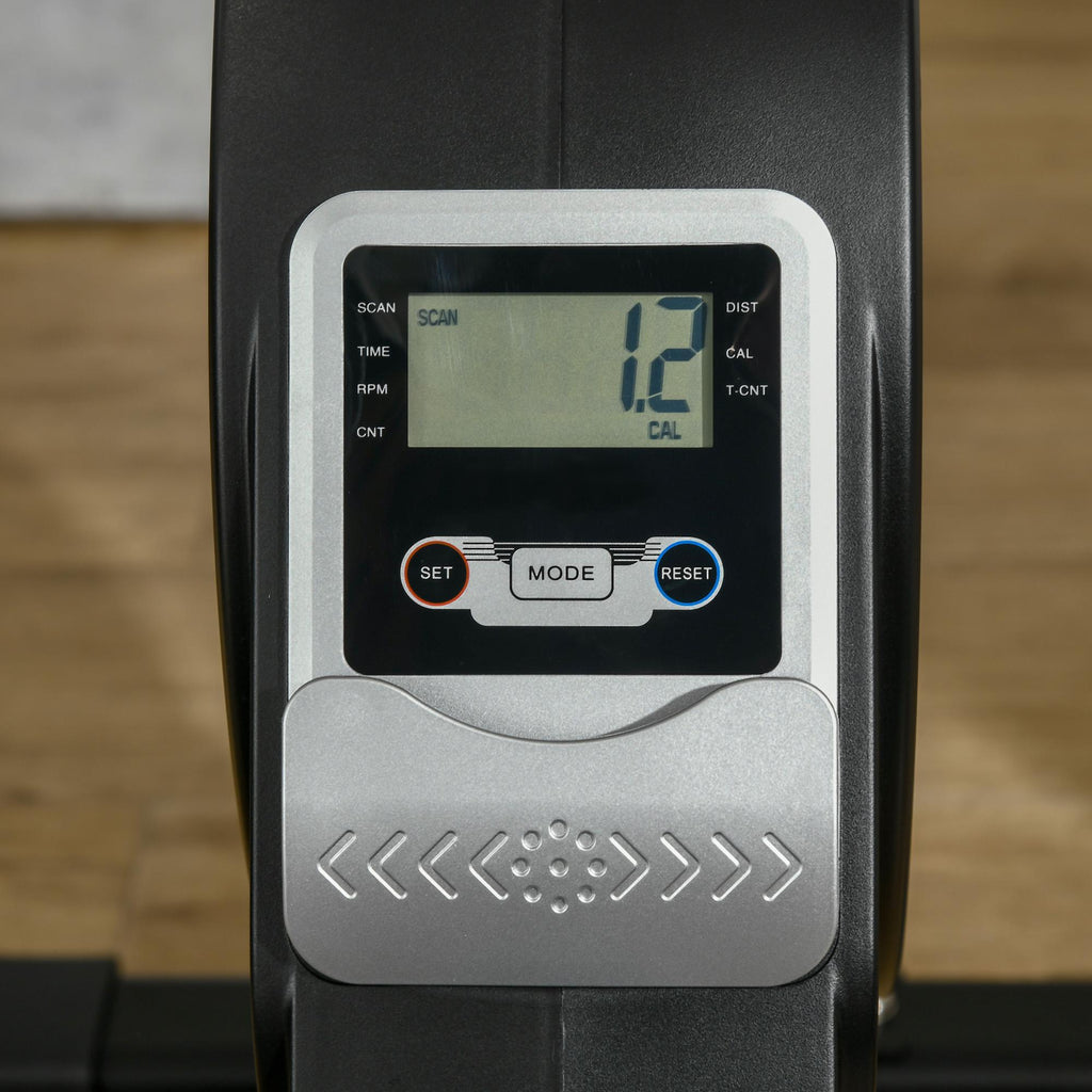 - Der digitale Monitor zeichnet Zeit, Geschwindigkeit, Wiederholungen und verbrannte Kalorien auf