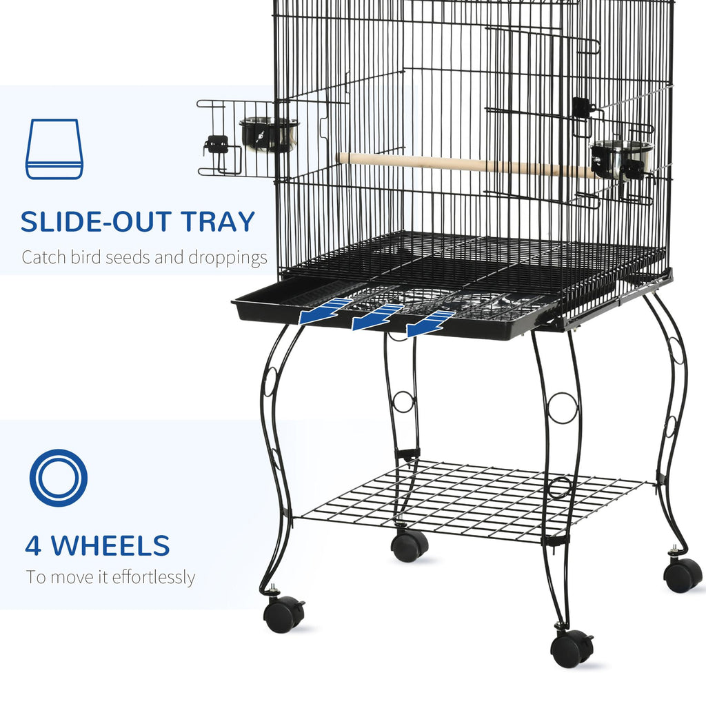 - TRAGBARER STÄNDER: Bewegen Sie diesen Vogelkäfig dank der vier Räder darunter mühelos von einem Ort zum anderen. Bewahren Sie Vogelzubehör auf dem praktischen Regal neben dem Ständer auf
