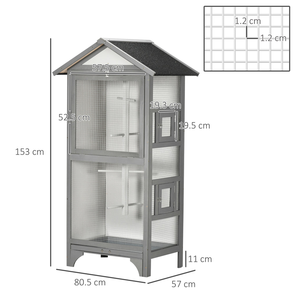 Voliera Gabbia per Uccelli da Esterno 80,5x57x158,5 cm Tetto in Asfalto in Legno di Abete Grigio Chiaro
