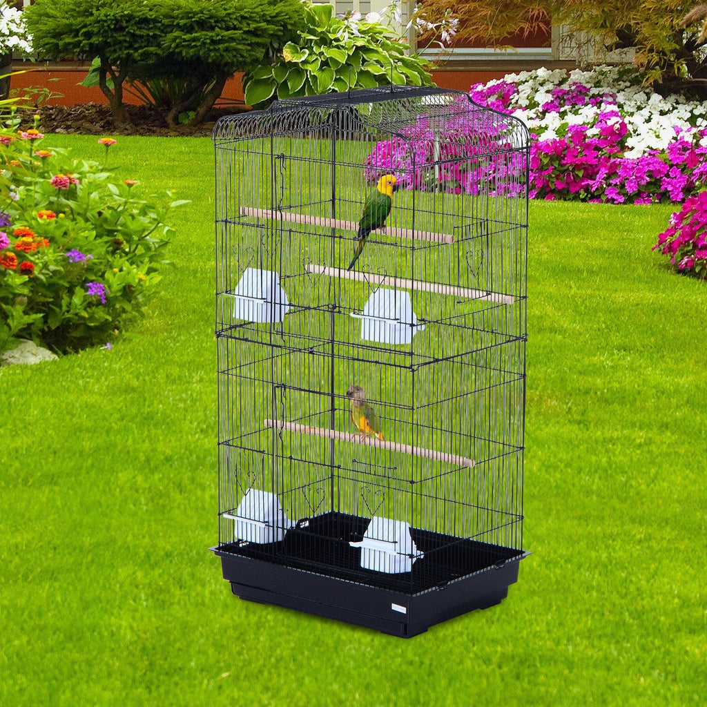 Vogelvoliere aus Eisen mit schwarzem Tablett 47,5 x 36 x 91 cm