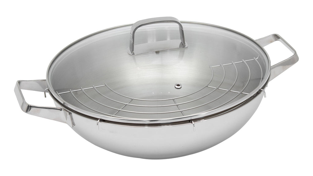 Wokpfanne Ø32 cm aus Antihaft-Edelstahl Induktion mit Deckel und Rost Kollektion