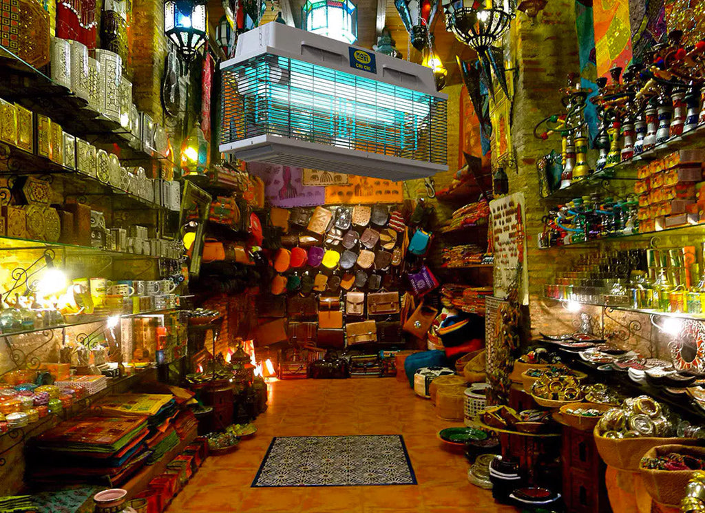 Ausgestattet mit 2 x 40 W UV-A Lampen liefert das Modell eine Gesamtleistung von 80 W und eine Reichweite von ca. 15-18 m. Die Lampenfassungen sind wasserdicht, um die einwandfreie Funktion der Lampen gegen Regen, Staub und Dämpfe zu gewährleisten.
