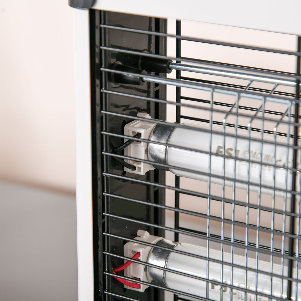 - 2 Röhren mit UV-Licht, um Insekten anzulocken und sie durch Stromschlag zu töten